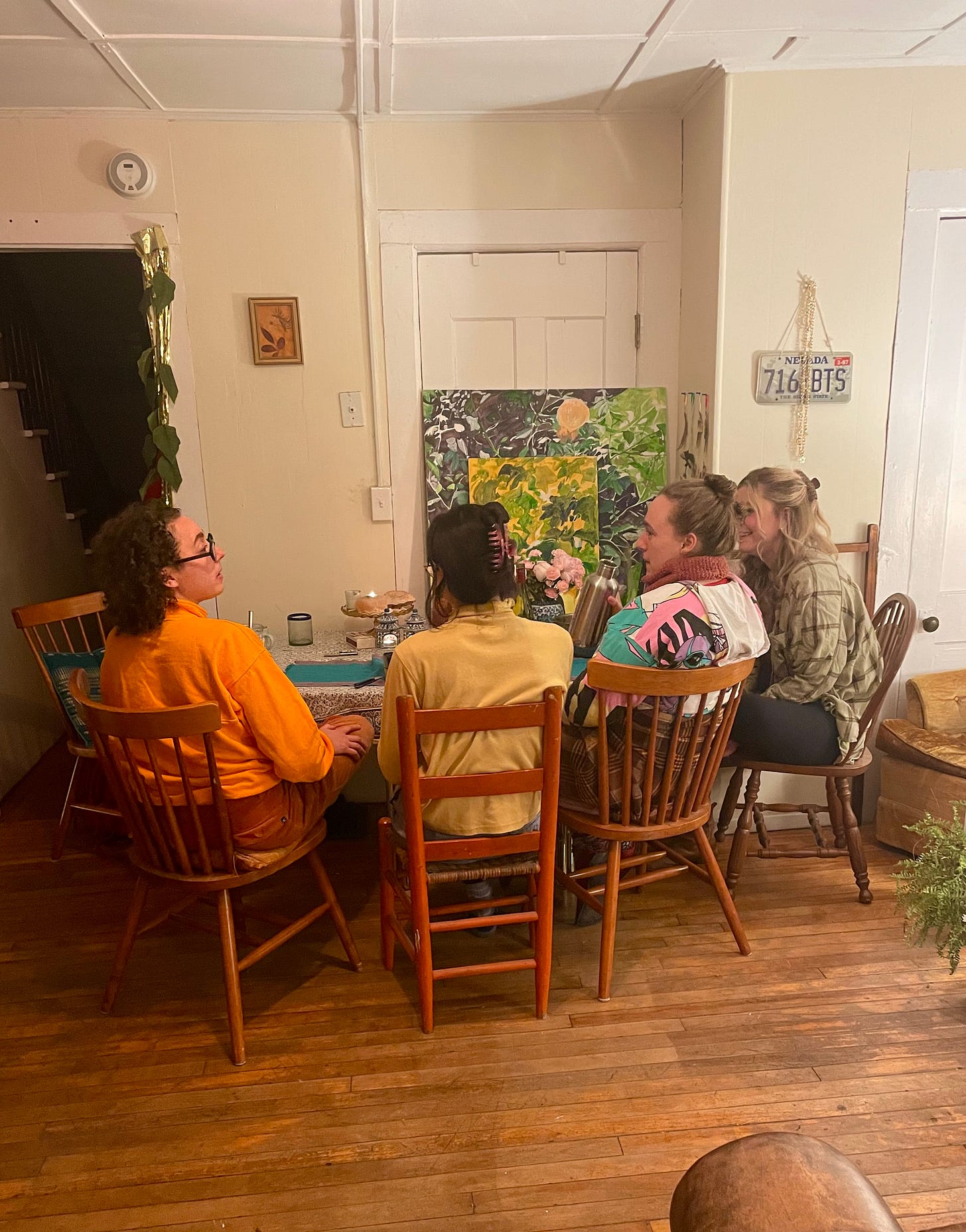 One hot day at lunch time, I asked the other farmers if they would rather have a million dollars or never have to eat dinner alone again. I remember they all were like, what kinda question is that? Of course the million dollars! But I myself would choose the dinners. Breakfast and lunch, I eat alone and enjoy my own company, so it’s not that I’m afraid of being lonely. The difference is that at dinner time, when the sun goes down, the kitchen window becomes a mirror, and when the table is full and all the dishes get dirty, the beauty of these people is reflected in the window, it is doubled, magnified, it’s like being alive twice, and even if we had no food on the table, I would still be nourished, because they tell me all these stories, and I learn about their corners of the world, their own universes, the things they worry about, I learn their preferences, and what makes them blush, and they talk to me about what’s going on, and their ideas and dreams, I tell them what I’m reading, like what Huey P. Newton wrote from prison, that nothing can be greater than the sum of it's parts except for ideas and dreams, and ideas and dreams are exactly the opposite of containment, and the more space I give them, the more space I have to breathe, so the dinner has hardly anything to do with the food or with the eating and it has everything to do with the people I spend time with, as time is shared, not owned, the only thing we all share is the day, and we really do share it, so I would like to share it, explicitly, around a table.